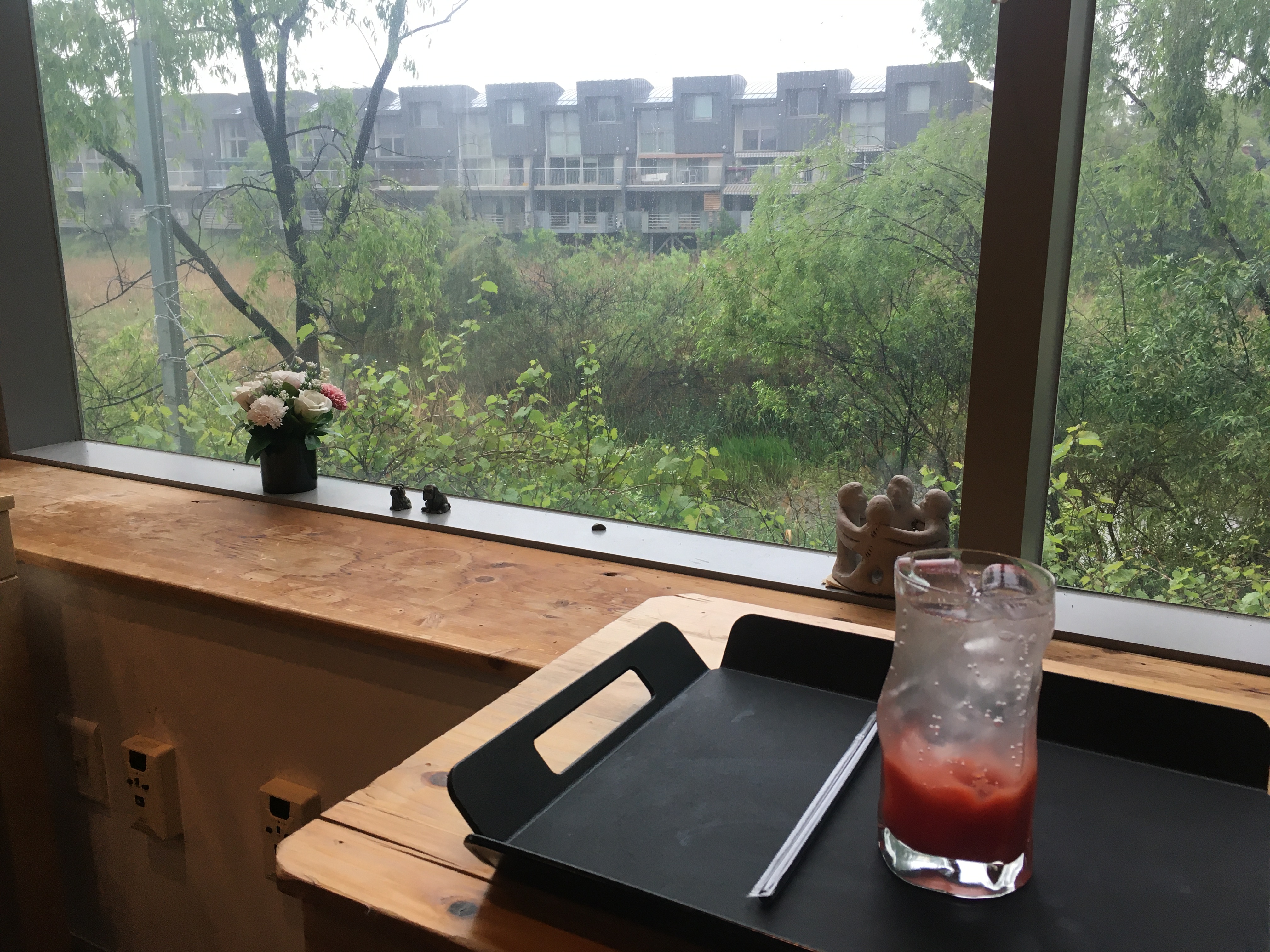 저는 큰 창가 옆 작은 1인 테이블에 앉았는데