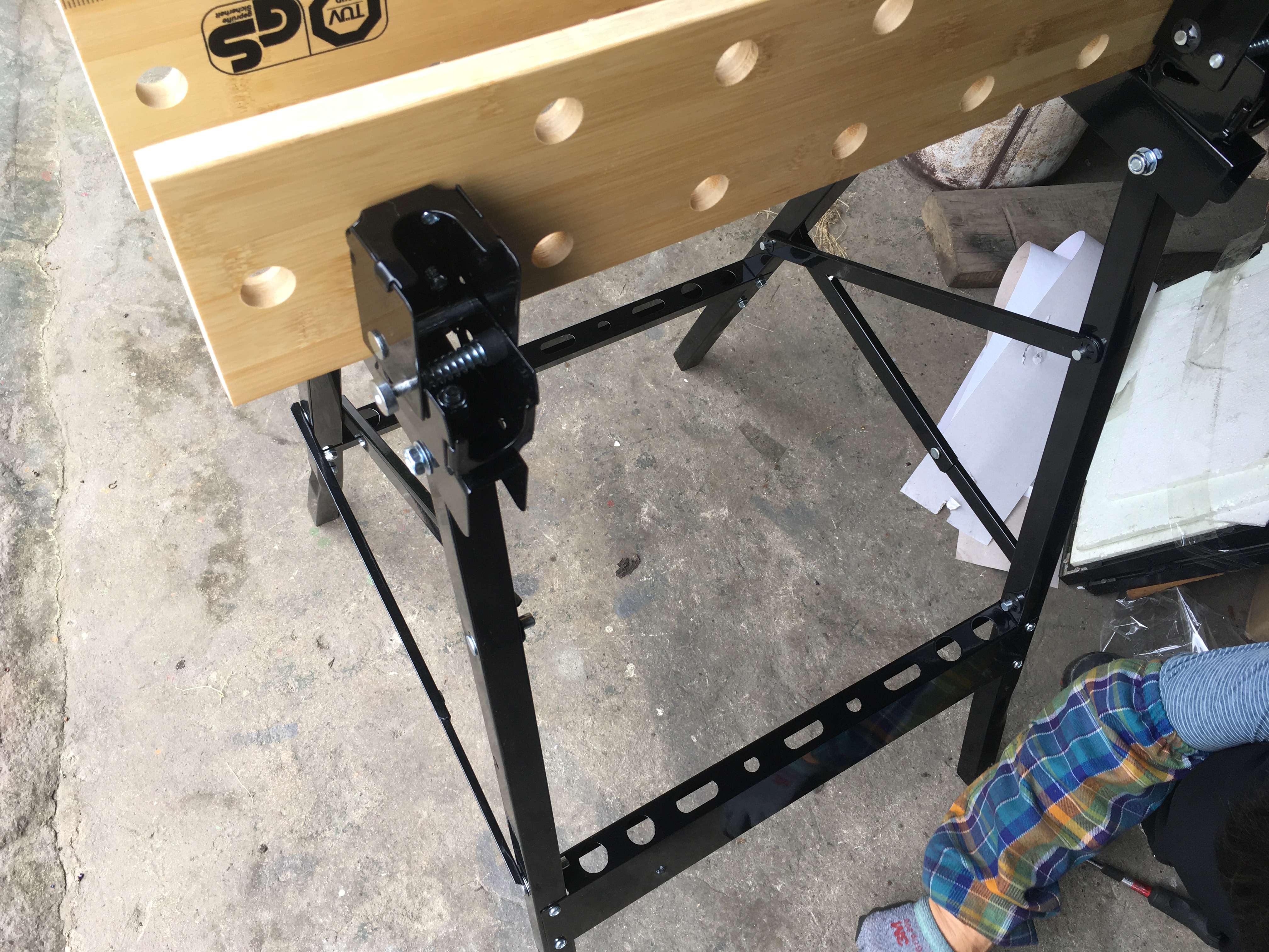하단 다리부에 보강 브라켓을 설치합니다. (브라켓에 홀이 있어서 공구 보관도 가능)