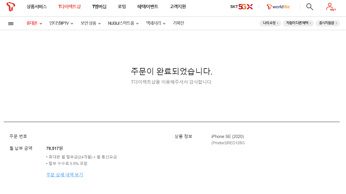 아이폰 SE2 구매 완료 (티다이렉트샵/아이폰SE2020)
