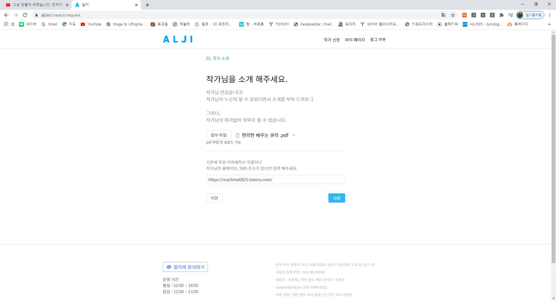 이렇게 작가 신청이 완료되고 검토에 들어가게 됩니다.