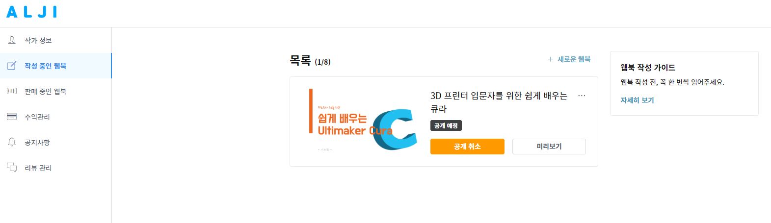 이렇게 알지(ALJI) 웹북 플랫폼에 웹북을 올려봤습니다.