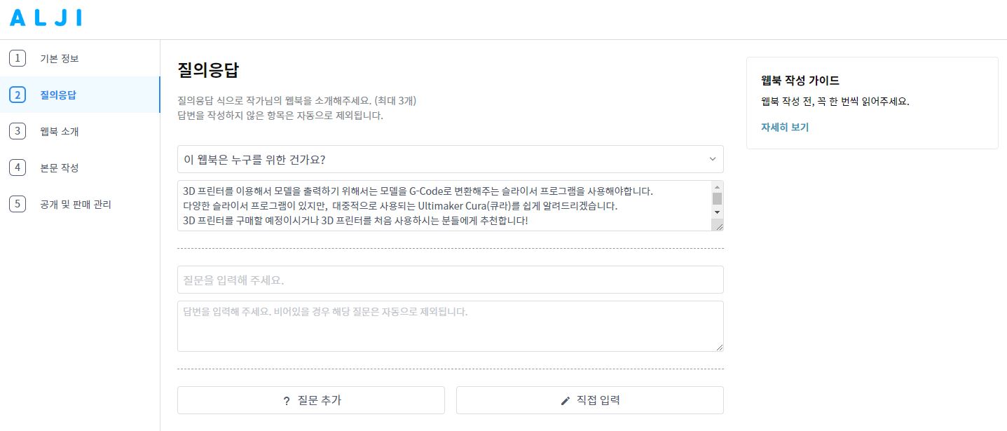 웹북 소개는 자신이 올릴 웹북에 대해 질의응답보다 더욱 상세하게 작성을 할 수 있는데요,