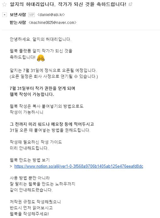 작가가 되었다는 메일을 받았습니다.