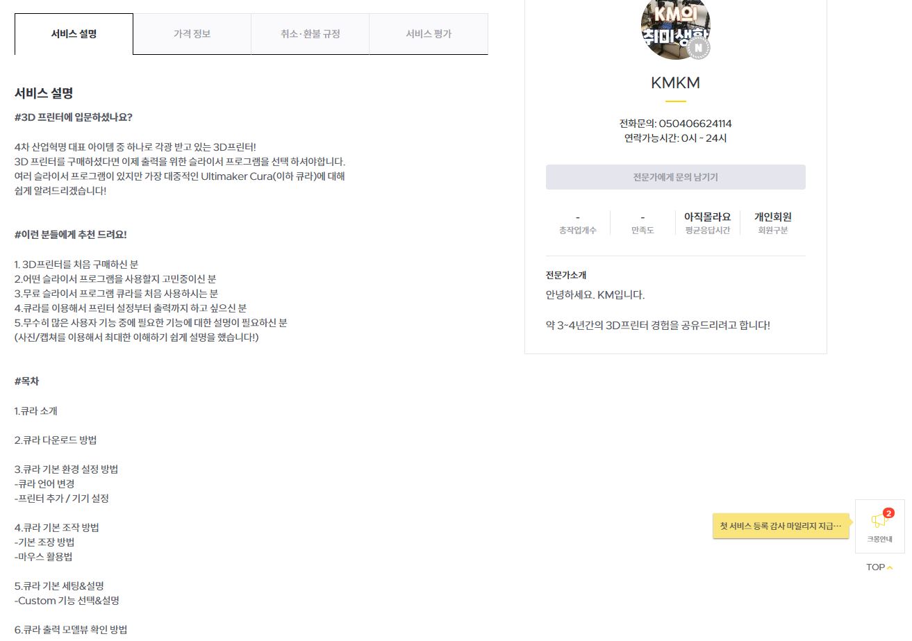 솔직히 크몽에 보내준 포트폴리오에는 3D프린터에 관한 공식적인 경력 및 자격증은 없고,