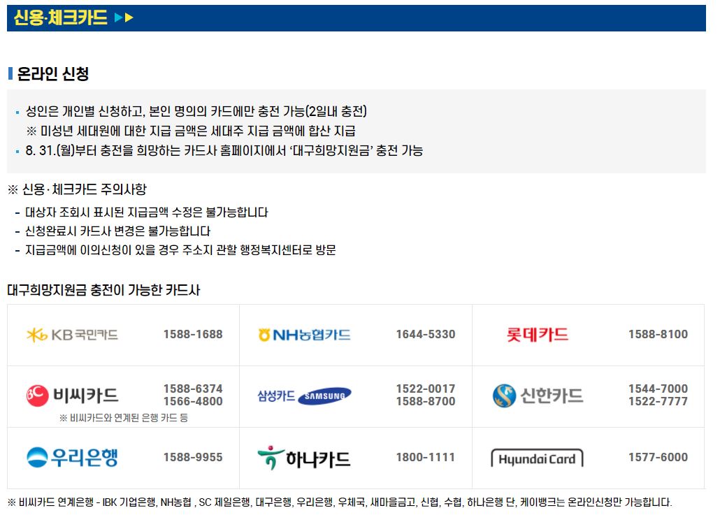 신용, 체크카드로 신청하여 받는 방법과 대구 행복 페이로 받는 방법 2가지가 있습니다.