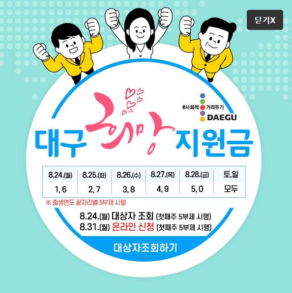 대구시에서 8월 24일 희망 지원금을 지급하겠다고 발표 후에
