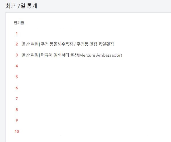 위에서 검색한 "울산여행"이라는 키워드도 사람들이 울산여행에 대한 글을 많이 작성하지 않아서 그런지