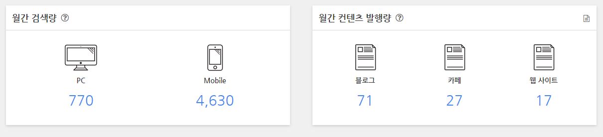 아래에 중요한 검색량과 콘텐츠 발행량이 나옵니다.