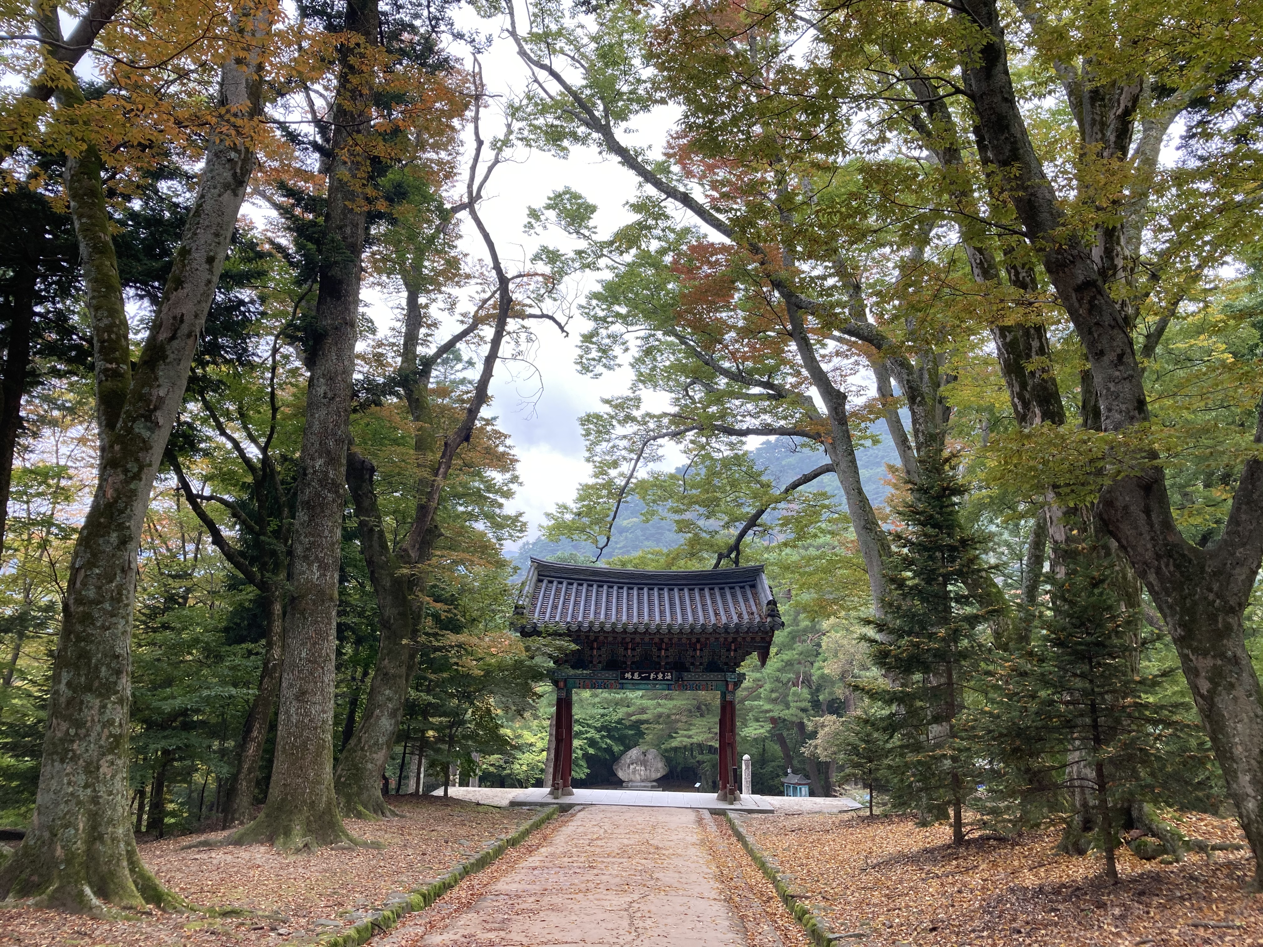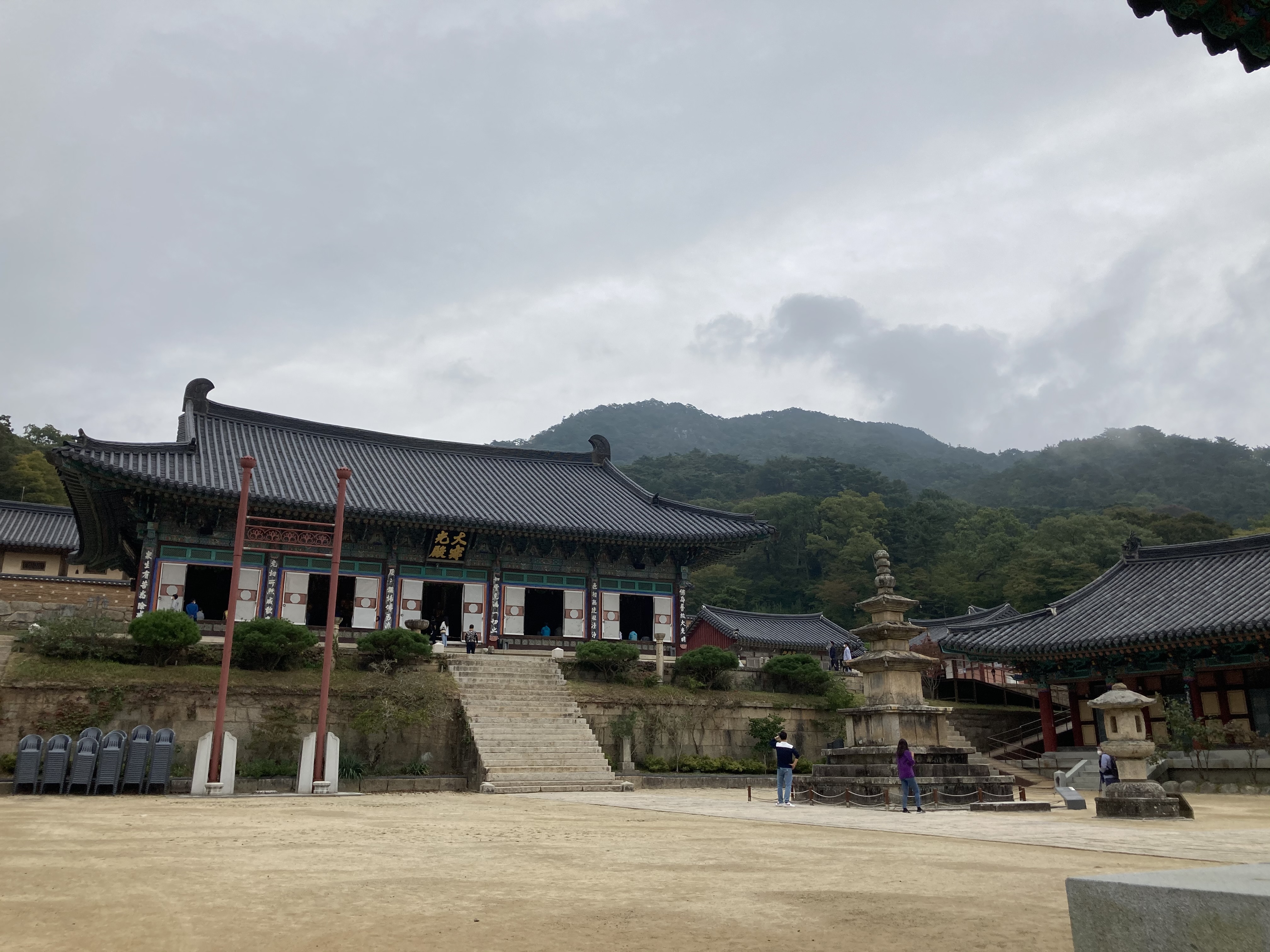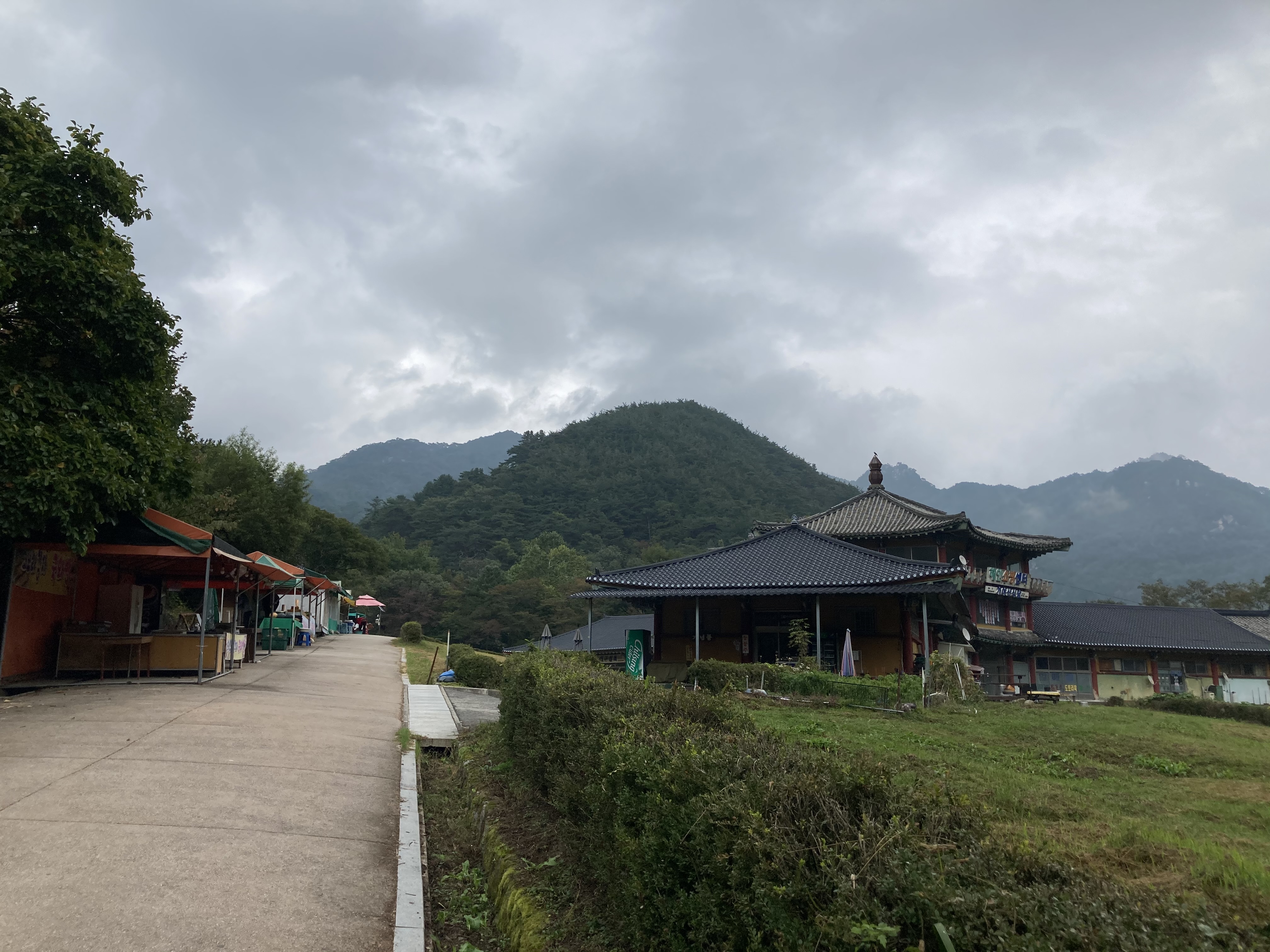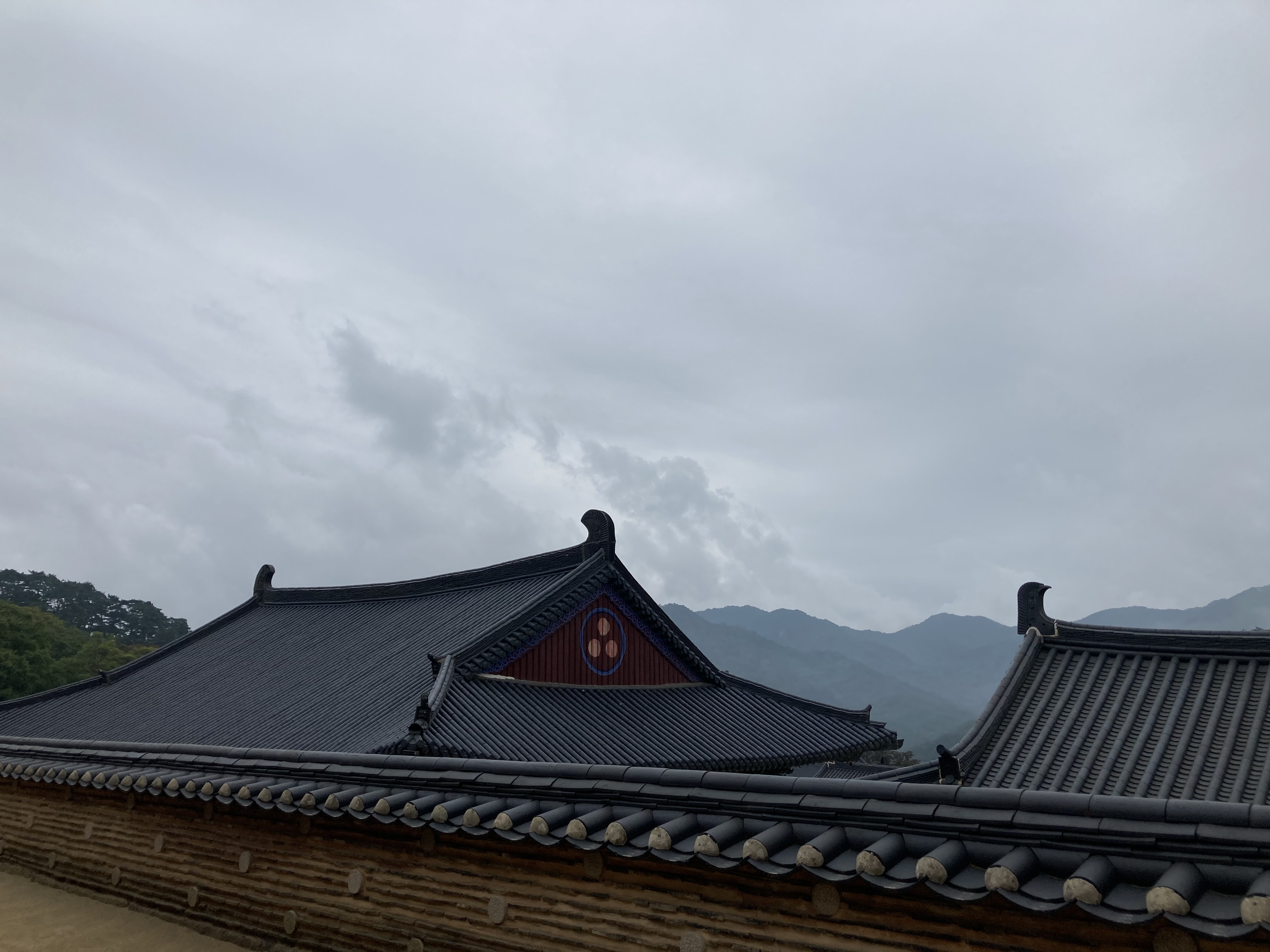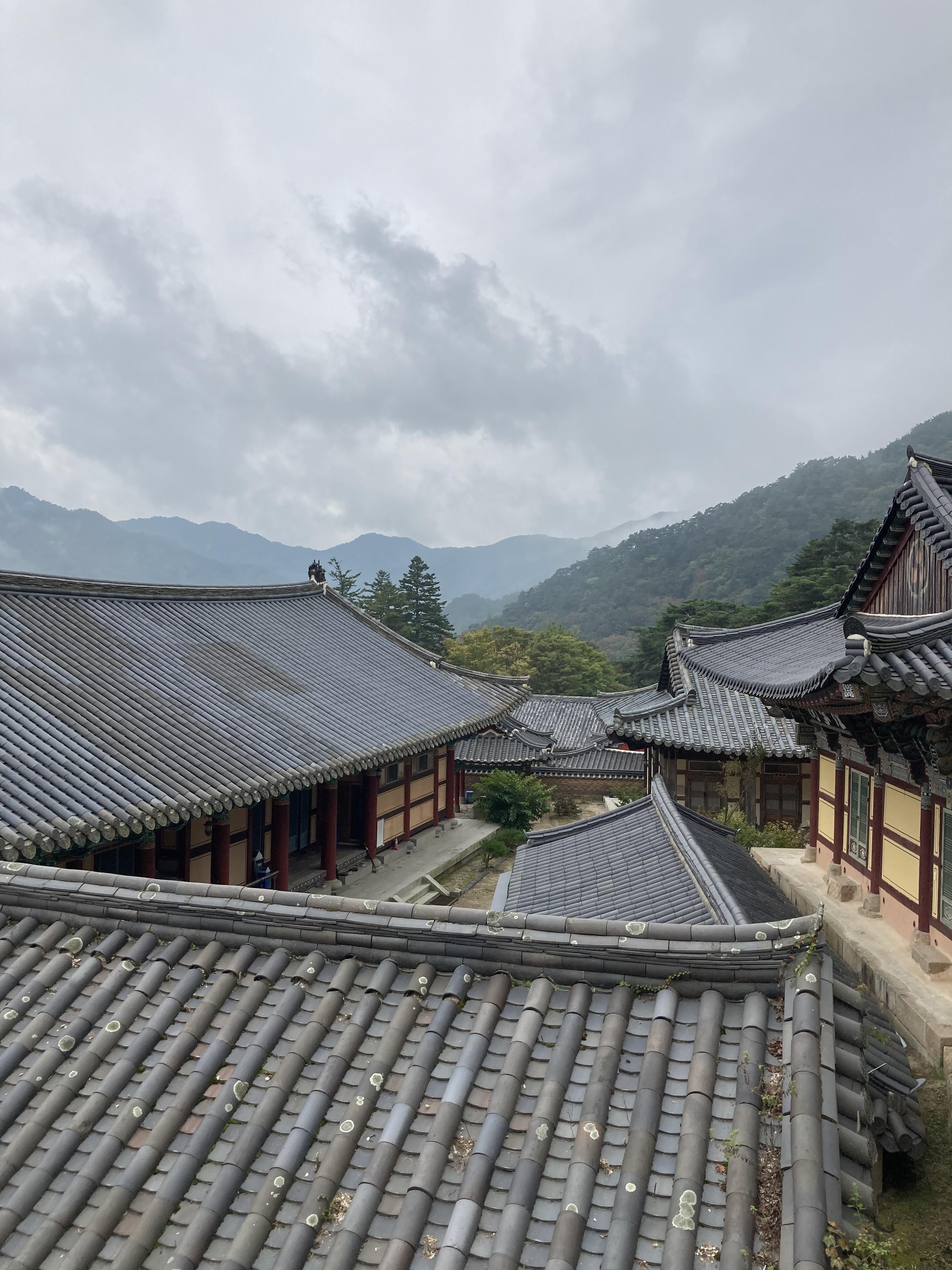어떤가요? 날씨는 흐리지만 조용한 절의 분위기와 주변 경관이 어우러져 차분하고 편안한 느낌이 납니다.