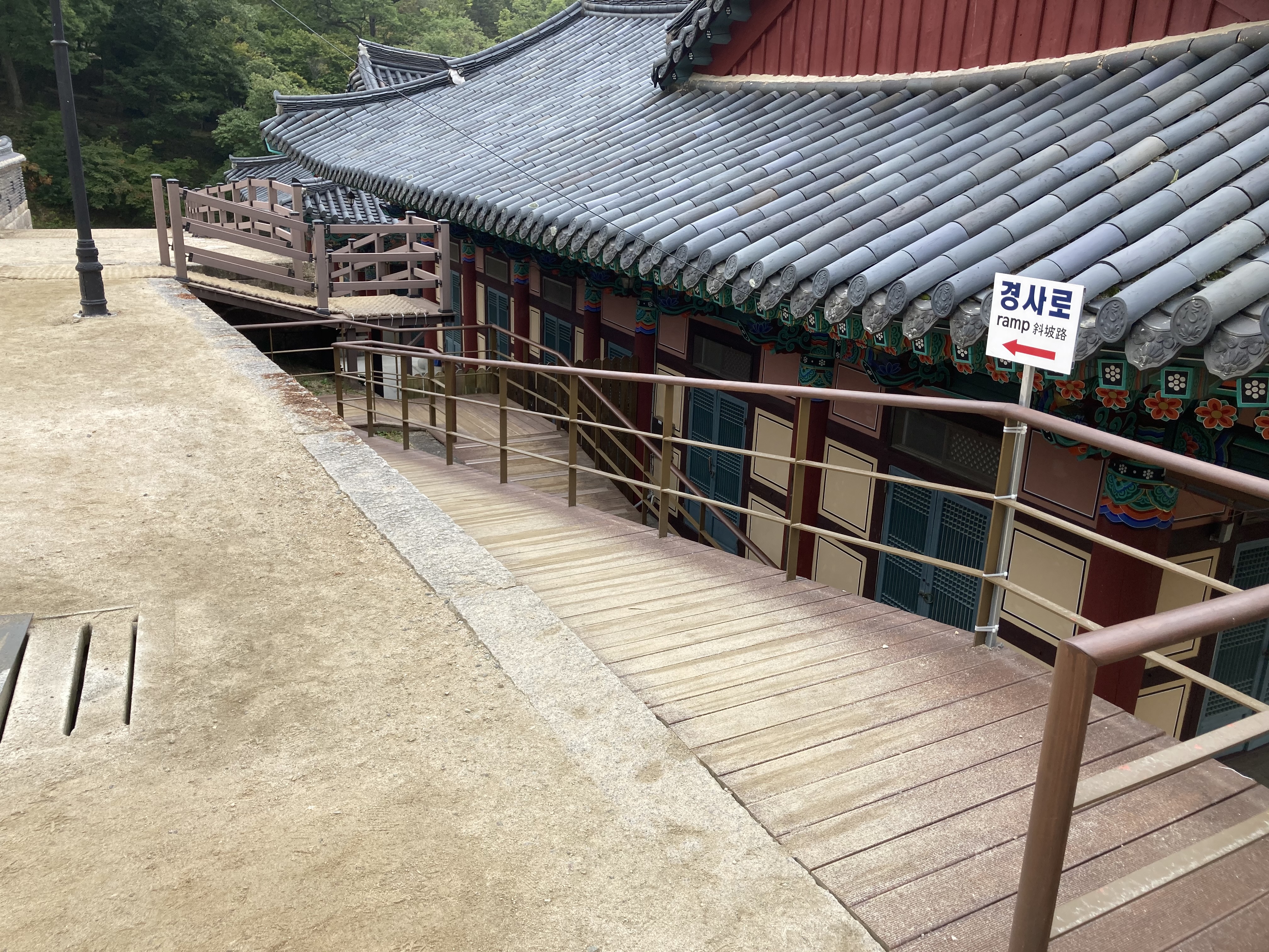 완만한 계단 없는 길(경사로)이 있기 때문에 걱정 없이 편하게 오시면 될 것 같습니다.