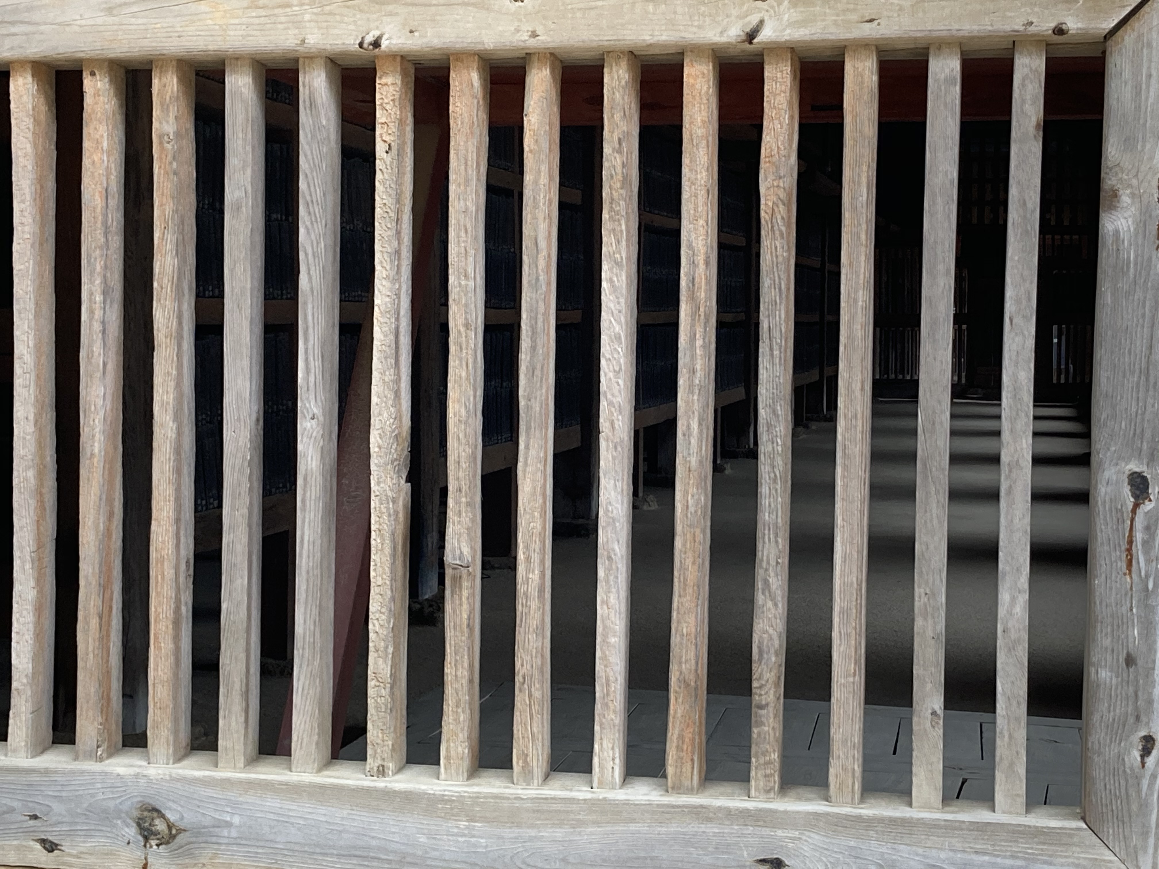 아쉽게도 팔만대장경은 가이드라인 밖에서 좁은 창살 사이로만 볼 수 있는데