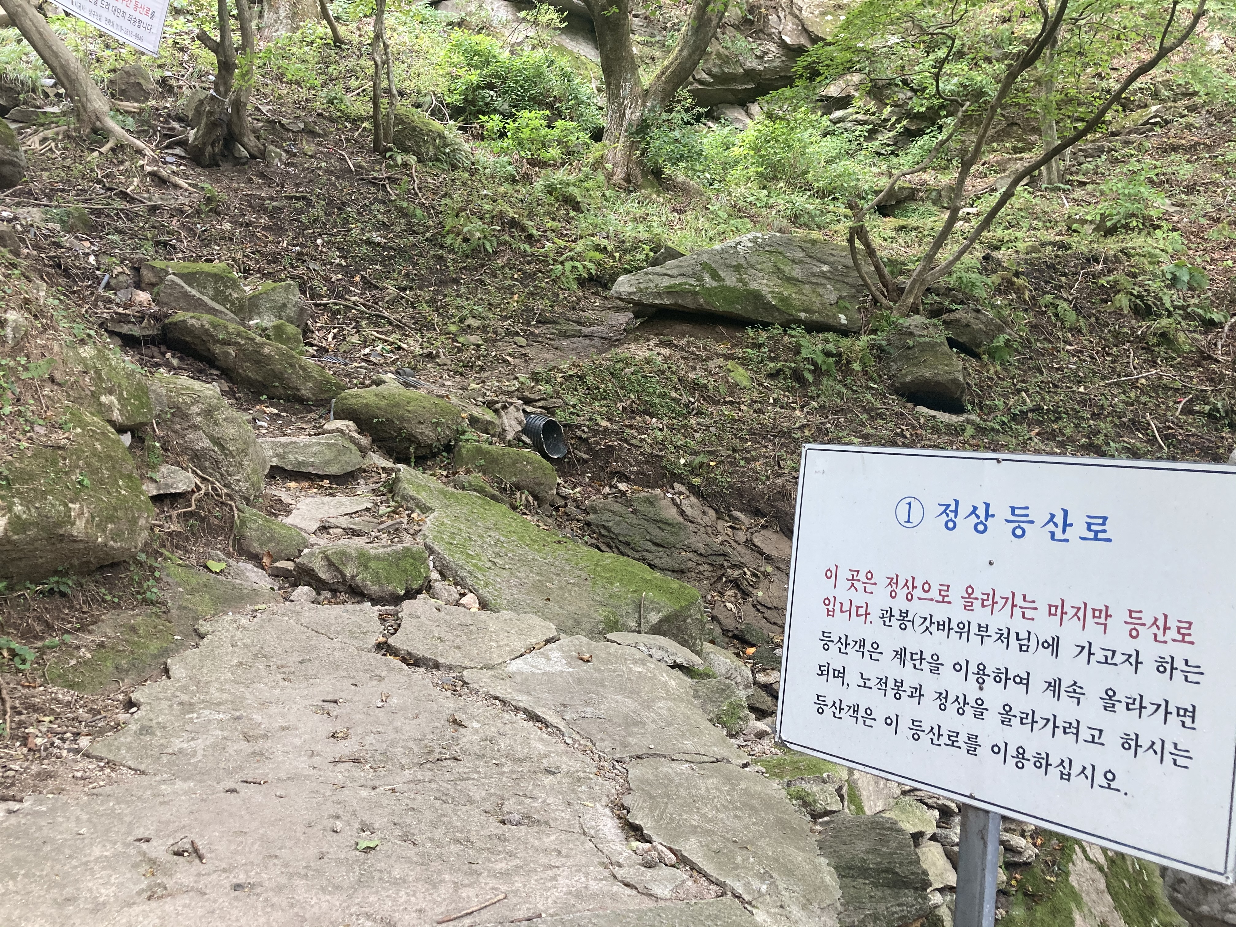 앞길(대구방향) 코스 중 돌계단이 아니라 오솔길 쪽으로 올라가셔야 합니다.