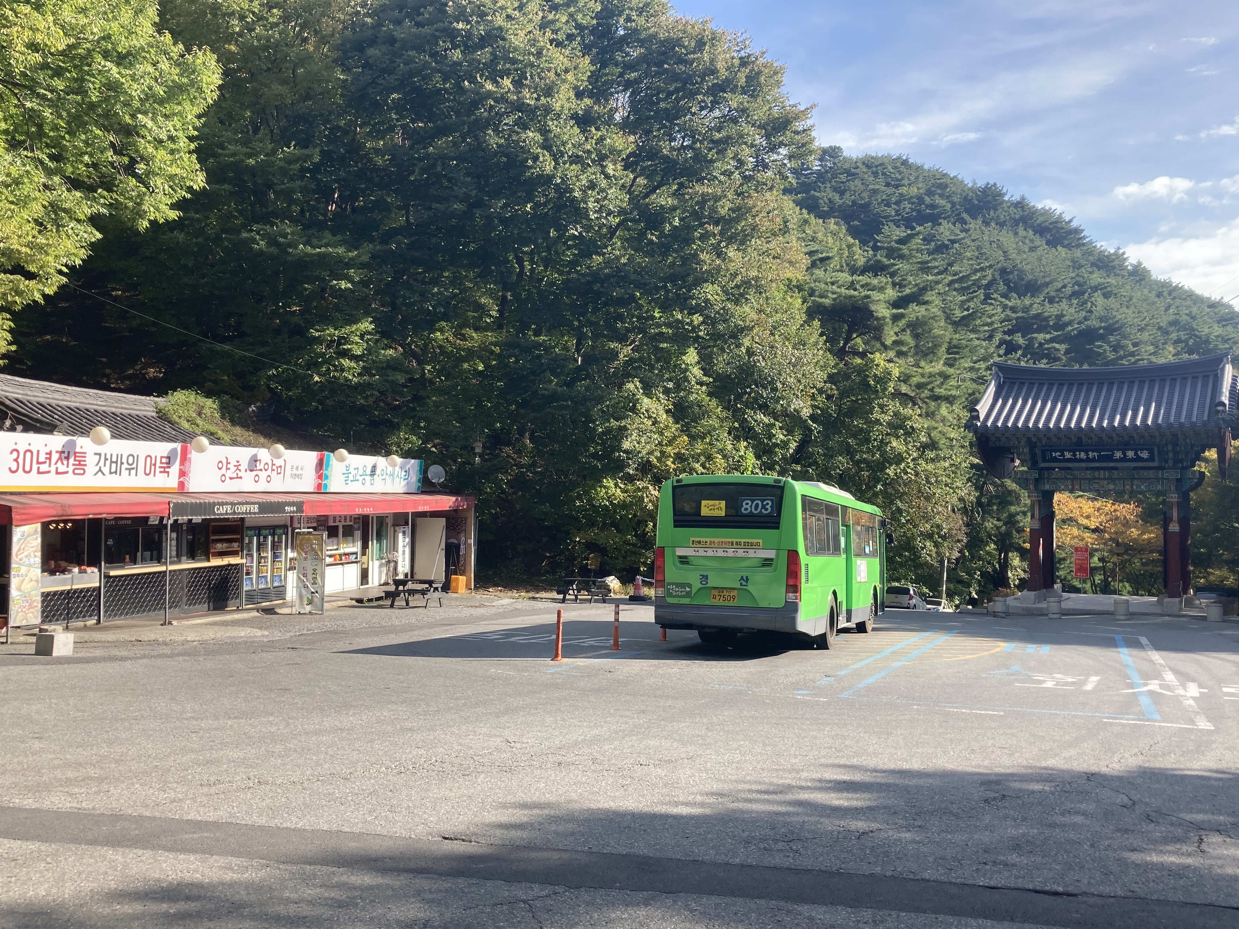 무료 셔틀 버스가 여기에 내려주는데 803번 버스를 이용하셔도 여기까지 오실 수 있어요.