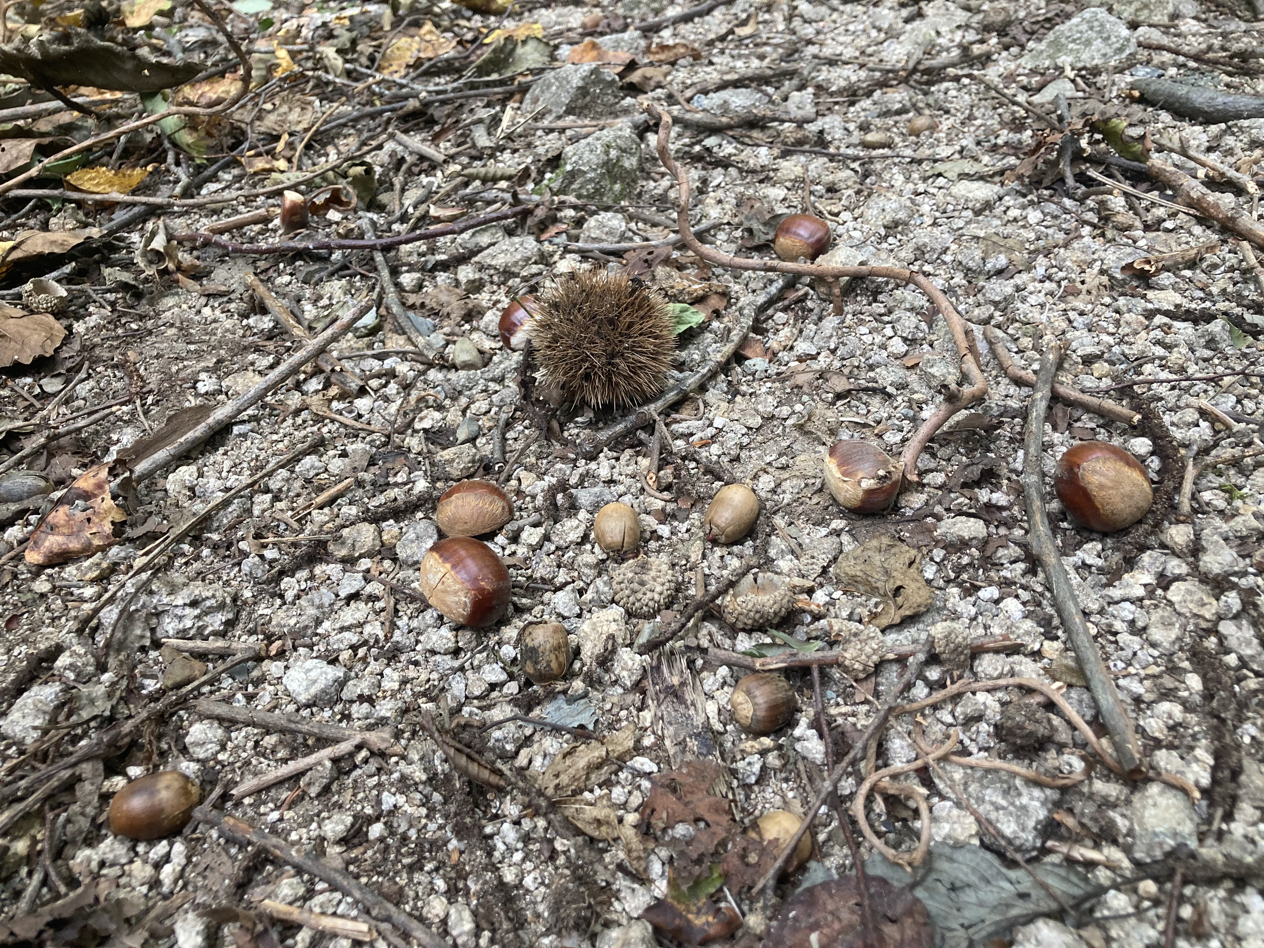 산에 오시면 산에 있는 동물들을 위해 이런 밤이나 도토리는 주워가지 마시고 남겨두세요!