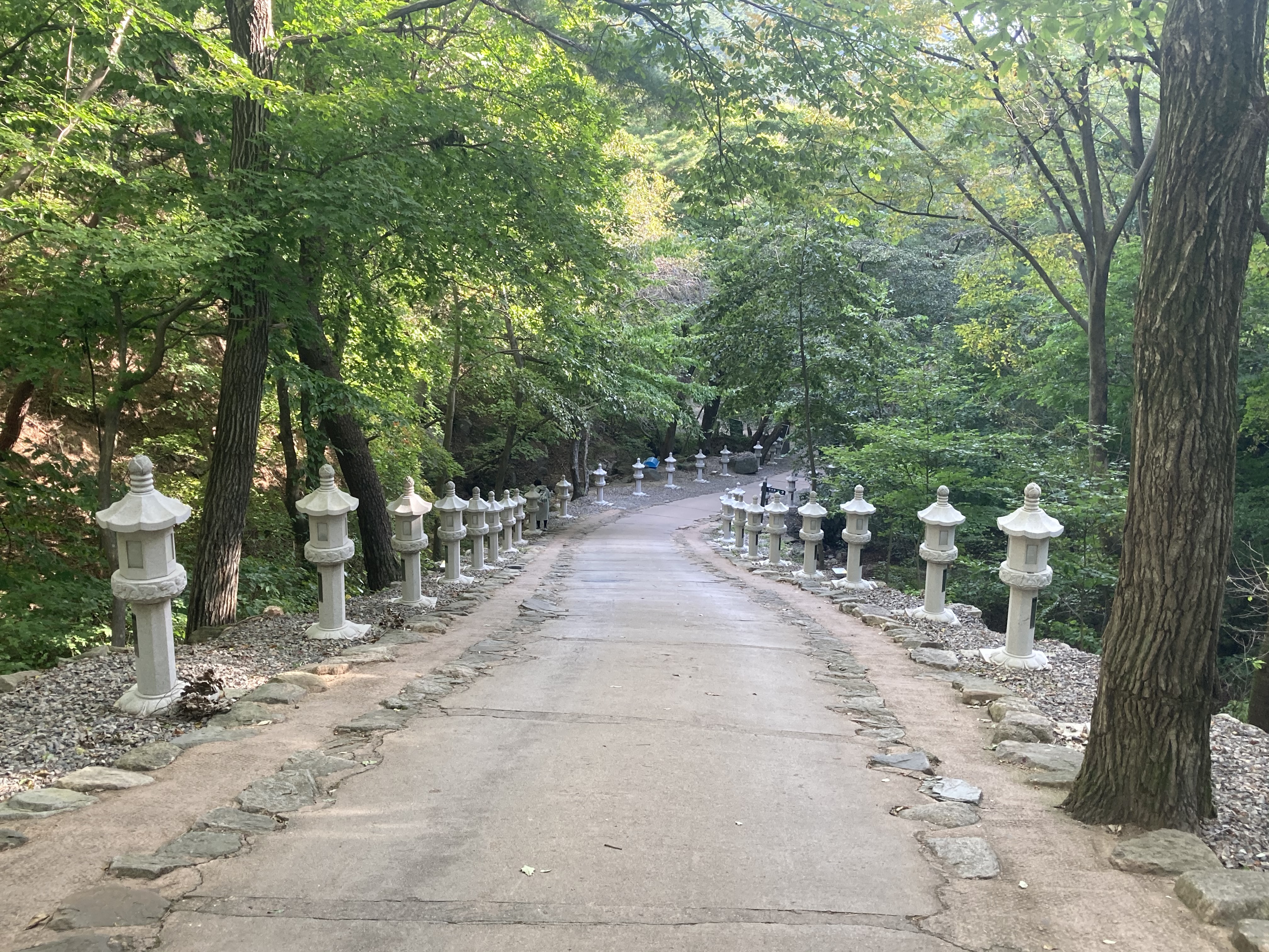길 양옆으로 석등이 쭉 서있는데 석등이 켜져있을 때 와서 봐도 참 예쁠 것 같습니다.