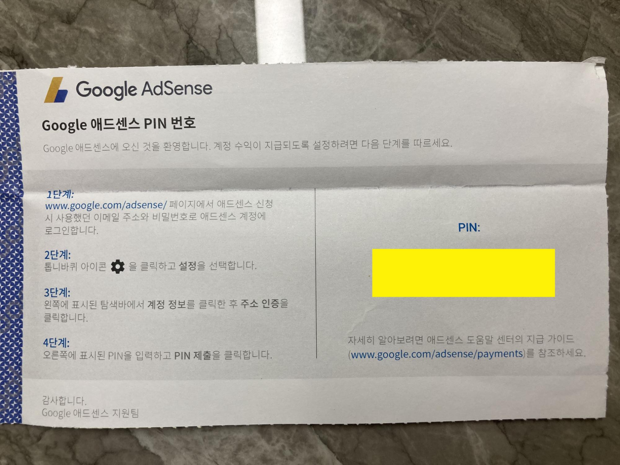 오늘은 방금 막 도착한 애드센스 PIN번호 등록 방법을 알려드리겠습니다.
