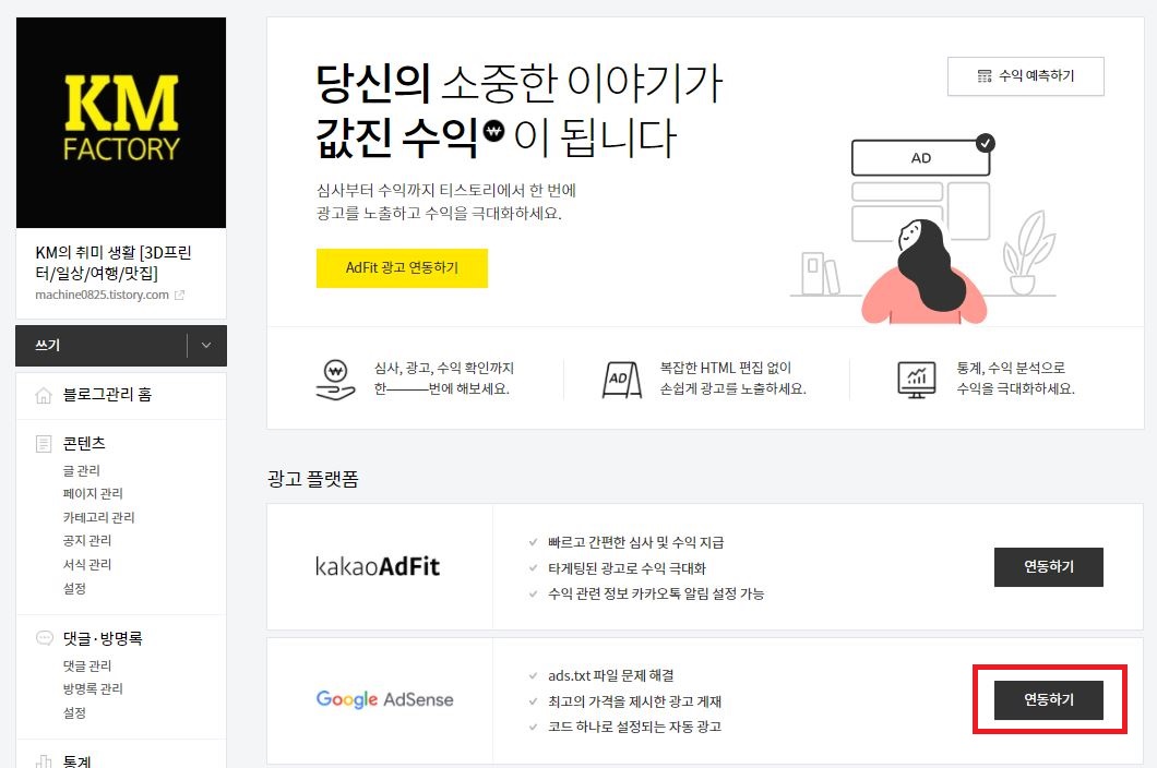티스토리 블로그 '수익 메뉴' 업데이트 (애드센스 연동 편)