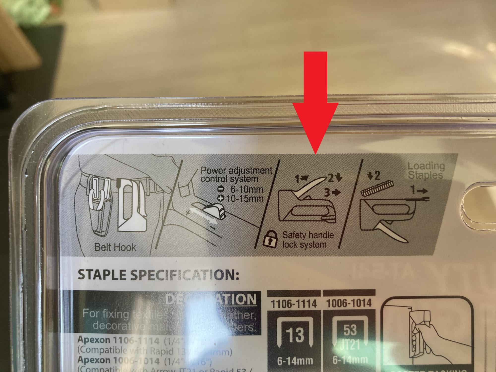 그리고 포장의 뒷면을 보면 안전을 위해 타카를 고정시키는 방법, 타카핀 넣는 방법