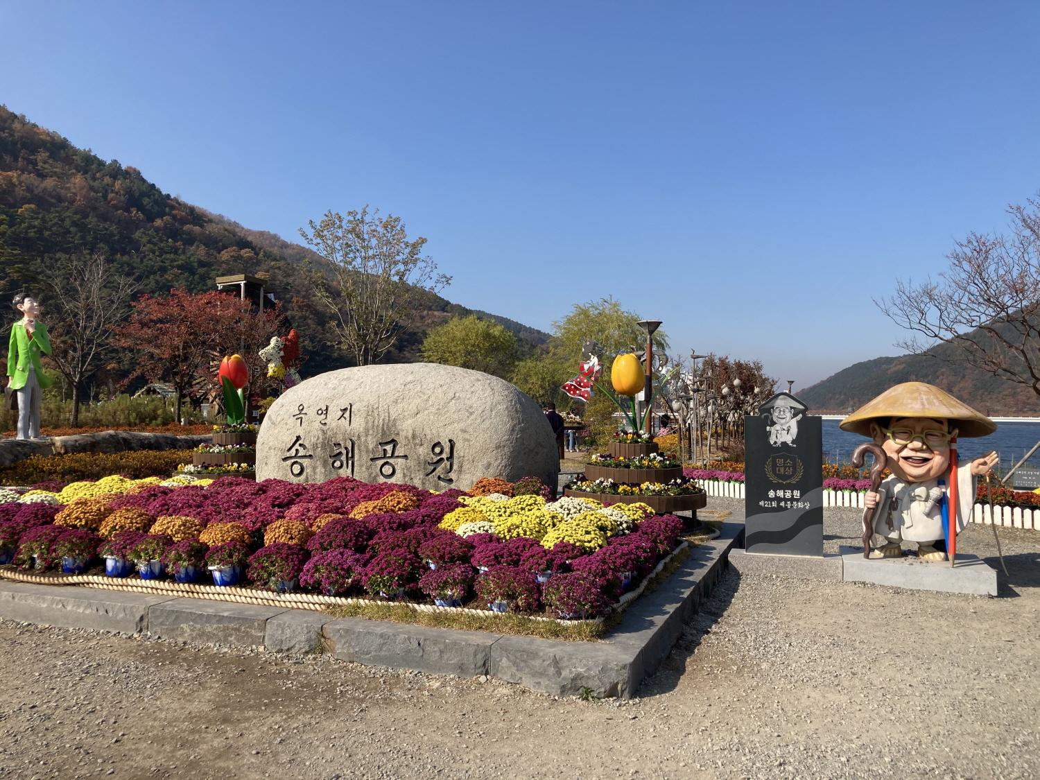 송해 공원으로 들어가는 초입부에 국화가 모여 있고, 국화를 이용해서
