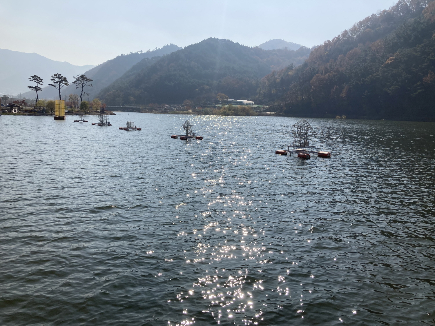 하트 모양 길도 그렇고 데크길을 따라 좌우를 보면 물 위에 무언가 떠 있는데