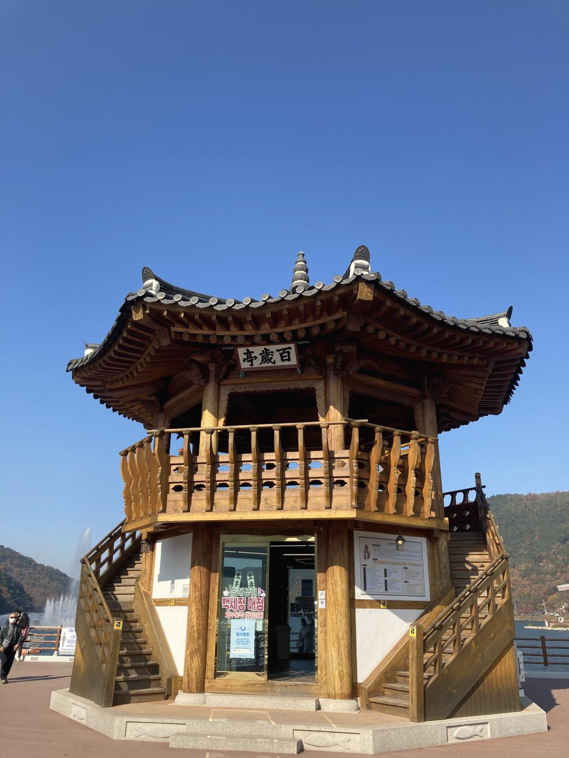'백세정'이라 이름이 지어져 있고, 1층은 여러 종류의 자판기가 있는 매점이 있습니다.