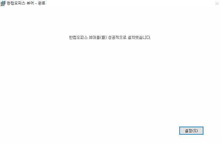 설치가 진행이 되고, 한컴오피스 뷰어를 성공적으로 설치했다는 문구가 뜨면