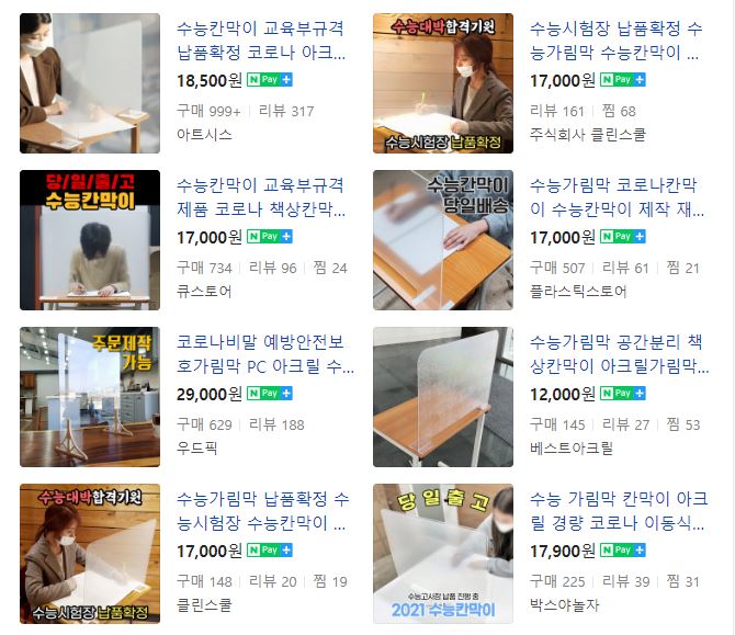 수능가림막 / 칸막이를 검색하면 이런식으로 제작해서 판매하는 업체가 많은데