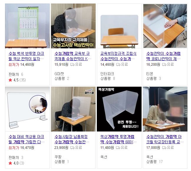 수능 가림막이라고 포털사이트에 검색을 해보면,