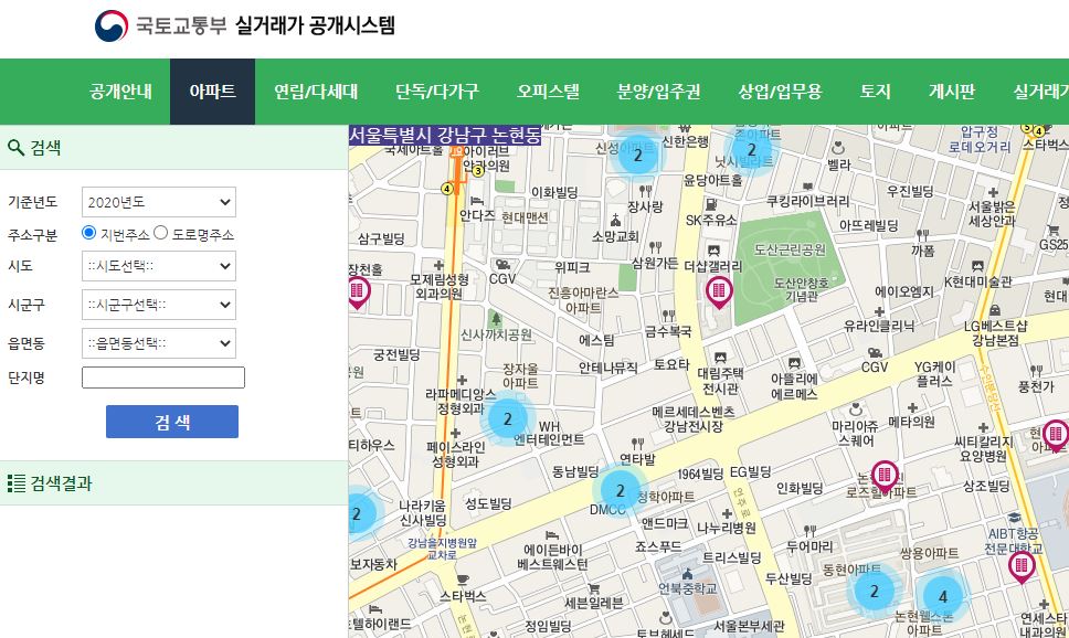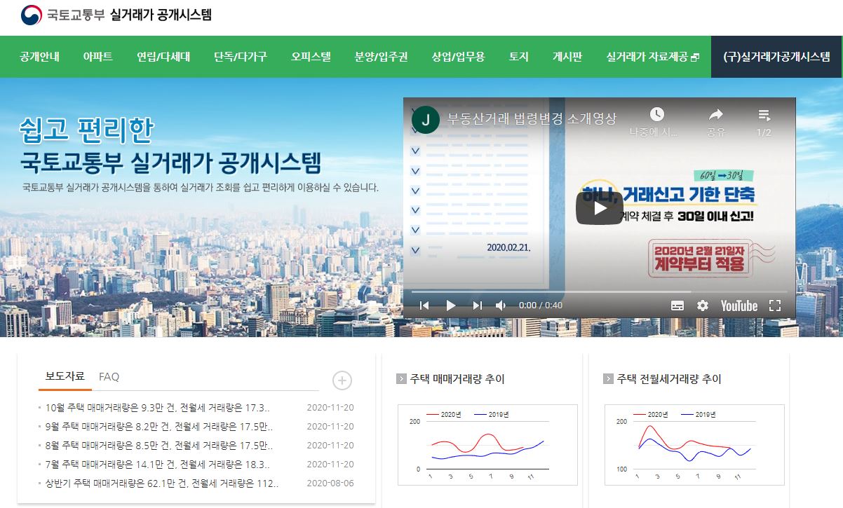현재 보고 계신 페이지가 국토교통부에서 운영하는 실거래가 공개시스템입니다.