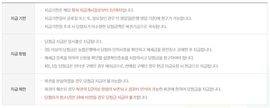 로또 복권 지급 기한 및 안내