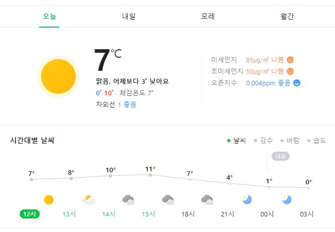 초미세먼지 수치가 오늘/내일/모레 이렇게 예측 값이 나오지만 변동폭이 크기 떄문에