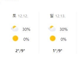 주간 날씨, 초미세먼지 (20년 12월 둘째 주, 대구)