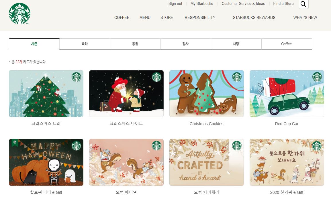스타벅스 e-기프트 카드는 스타벅스 홈페이지에 들어가면 쉽게 구매해서 전달이 가능합니다.