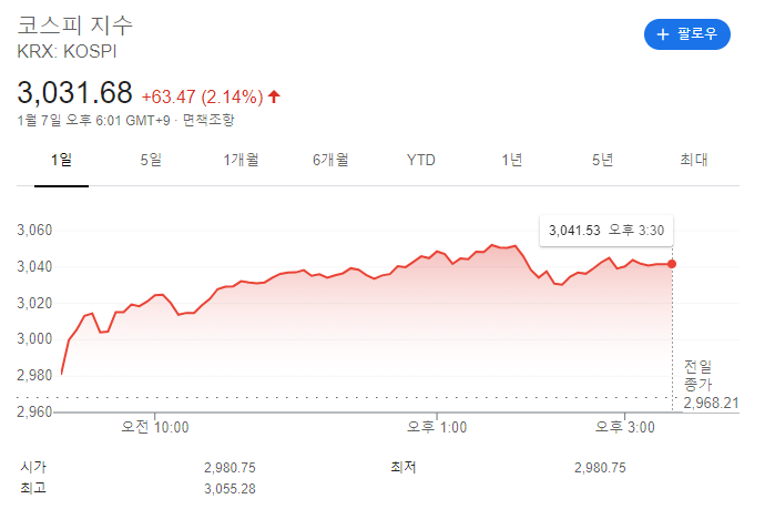 어제 뉴스에는 하루 종일 코스피 지수 3,000 돌파가 이슈였는데요,