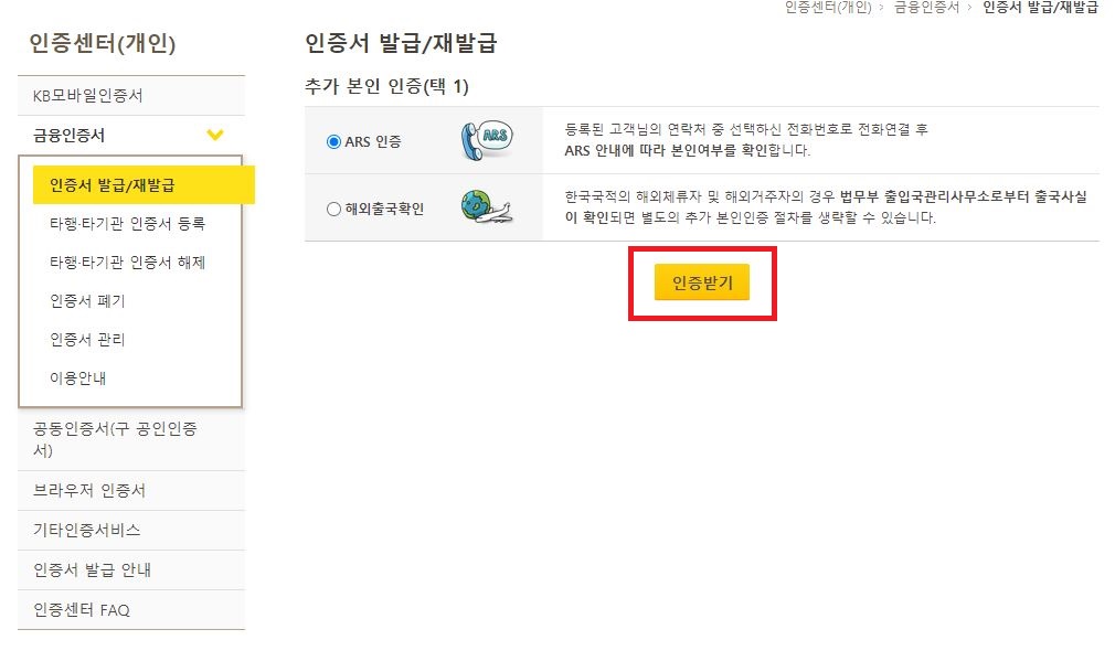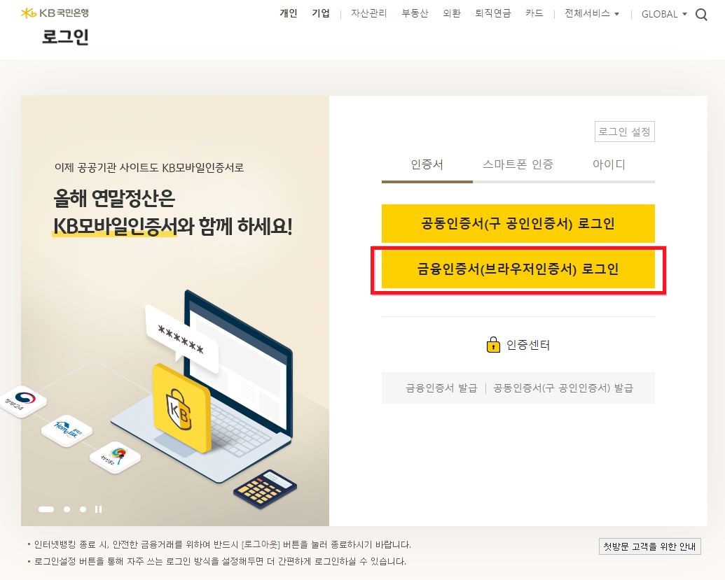국민은행에서 금융인증서 만들기