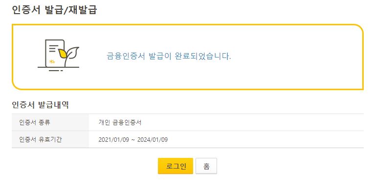 금융인증서 발급이 완료되었습니다.