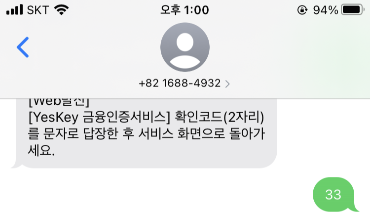 물론 확인코드를 받고 문자를 보내는 1단계가 귀찮긴 하지만 불과... 몇 초 걸리지 않는