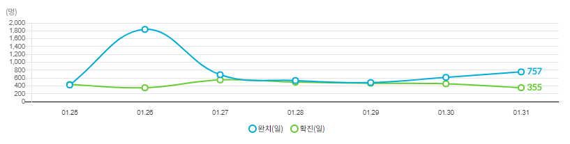 일별 코로나 19 확진자 수는 오늘(1/31) 355명을 기록했고,