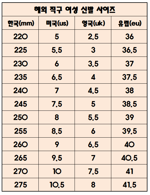 해외 직구 시 참고! 미국 / 유럽 / 영국 신발 사이즈 표