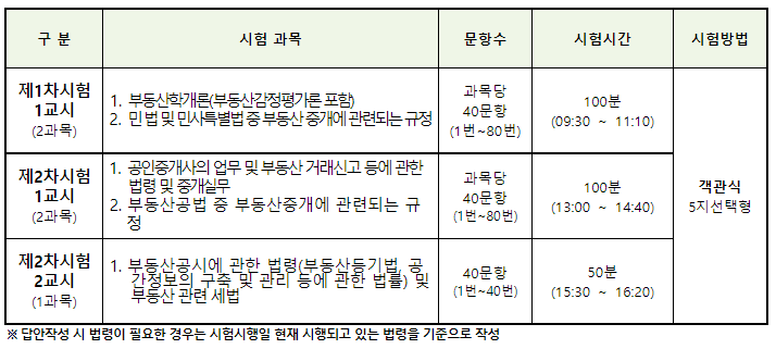 그러면 공인중개사 시험 과목 및 시험시간에 대해 알아볼까요?
