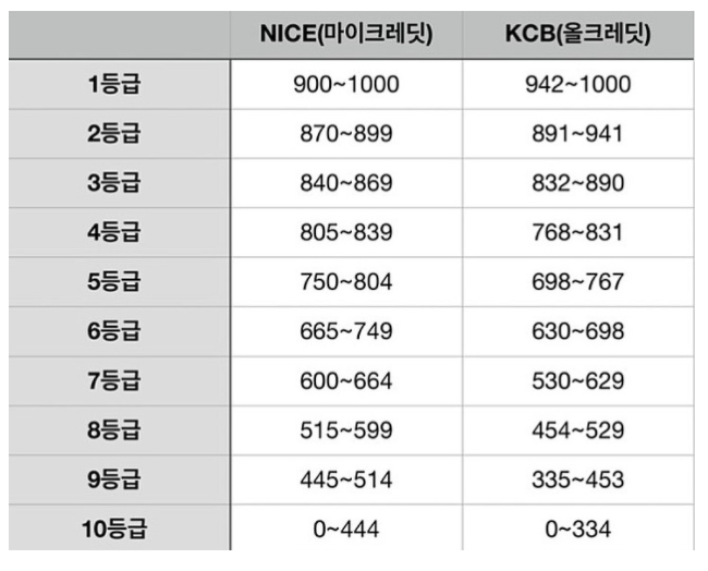 기존에 개인 신용 등급은 1 ~ 10등급까지 등급으로 나누어져 있었습니다.