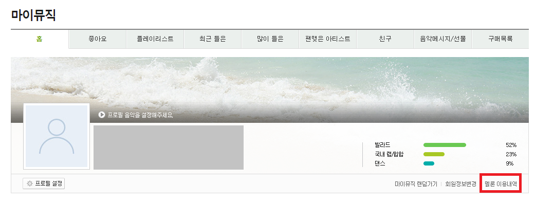 중간쯤에 보면 [멜론 이용내역]이란 곳으로 들어갑니다.