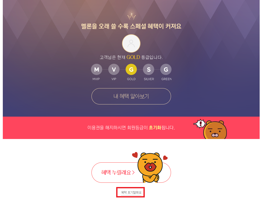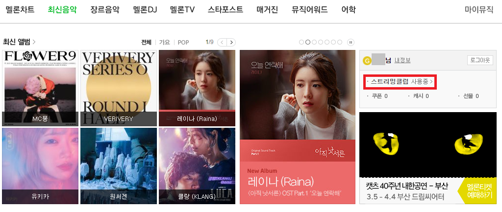 멜론 사이트를 보면 이용권을 사용/결제하는 것은 눈에 잘 띄게 되어있는데