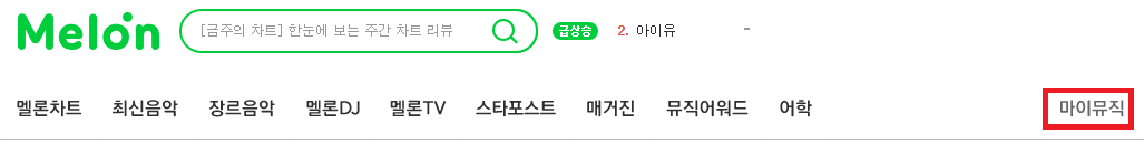 로그인 후 우측 상단에 [마이뮤직]으로 이동해주세요.