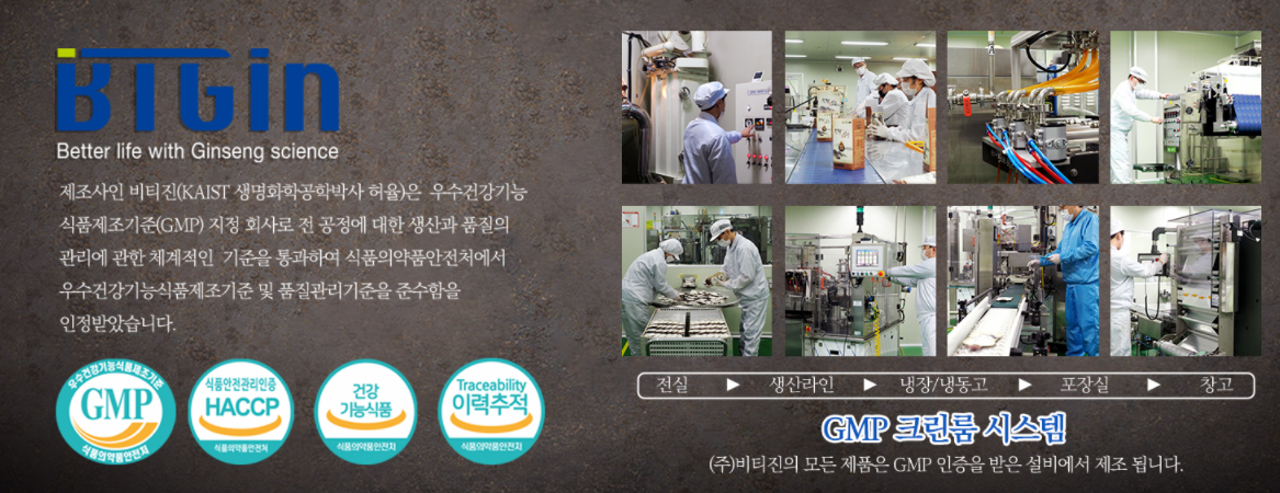 <관절보궁>은 사람이 섭취하는 건강기능식품을 제조하는 회사 답게 식품제조기준(GMP) 지정 회사로