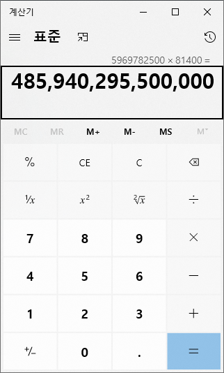 5,969,782,500 X 81,400 을 계산하면!