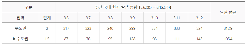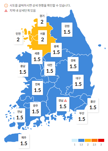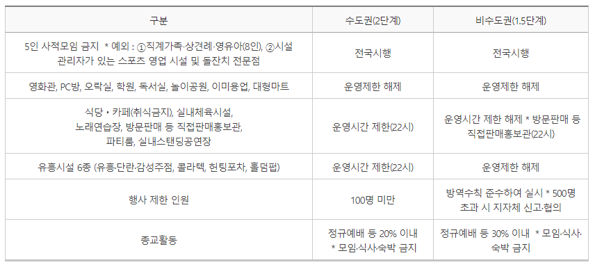 2단계 수준을 유지하고 있으며, 그 외 비 수도권 지방은 1.5단계입니다.