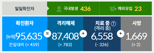 300대까지 줄어들었으나 다시 400~500대로 꾸준히 확진자가 발생하고 있습니다.