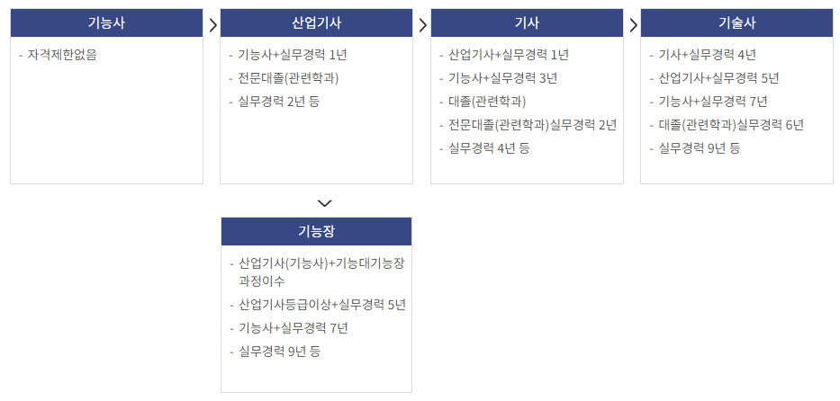 - 기능사 취득 후 + 실무경력 3년