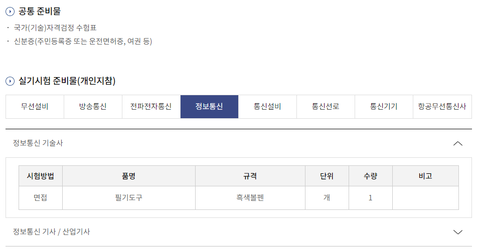 ■ 정보통신 기사 수험 준비물